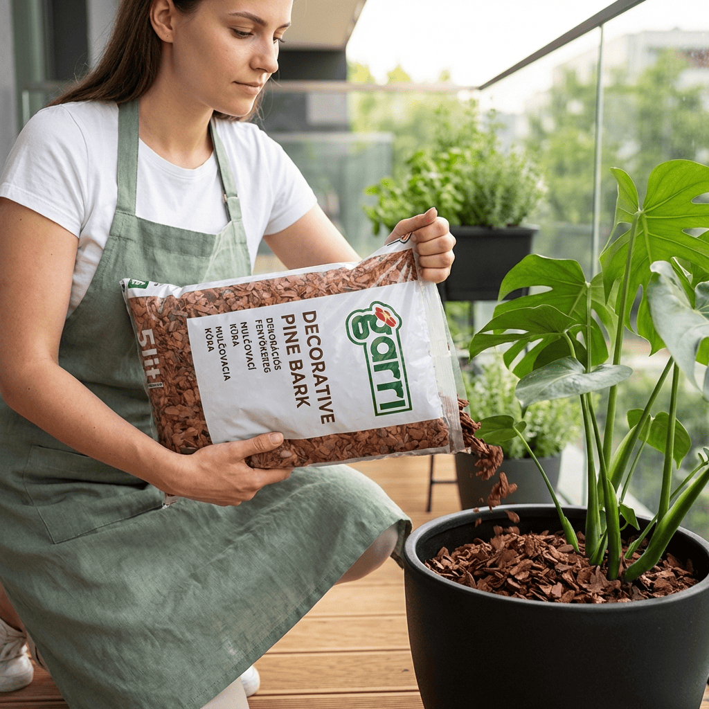 Kiválóan alkalmas cserje csoportok, fák, örökzöldek, nagyobb balkonládák talajtakarására. Megakadályozza a nedvesség gyors párolgását és a gyomképződést. Nedvességtartó képessége segíti a növények ideális vízháztartását. Dekoratív jellege esztétikus hatást nyújt a kertekben. Szemcseméret apró: 10-50 mm, borovi fenyőből. Javasolt felhasználás: januártól decemberig.